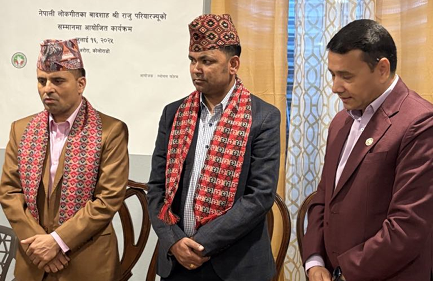 कोलोराडो । जातिभेद विरुद्ध विश्वमञ्च ग्लोबल फोरमको आयोजनामा यही जुलाई १६, २०२५ का दिन अरोरा कोलोराडोमा आयोजित एक कार्यक्रममा नेपाली लोकगीतका बादशाह राजु परिवार सम्मानित भएका छन् ।